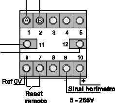 - N VVV - Voltagem de alimentação ex: U - universal automático de 80 a 265Vca (standard) 012 ; 024; 048 ; 060 (tensão locomotiva) etc. T- Tipo da corrente de alimentação 0 = Corrente alternada; 1= corrente contínua N - 0 => Sem observação. 1=> Com observação (com nota) O sinal de entrada do horimetro é sempre na faixa de 5 a 265 Vca ou Vcc independente da alimentação do aparelho. Ex: H-1110MB-U-0-0 modelo standard com todas as funções. O modelo para 220 Vca também atende a 127Vca (Seleção de voltagem automática de 80 a 265Vca ou Vcc). Exemplo para 12Vcc (corrente contínua): H-1110MB-012-1-0 |